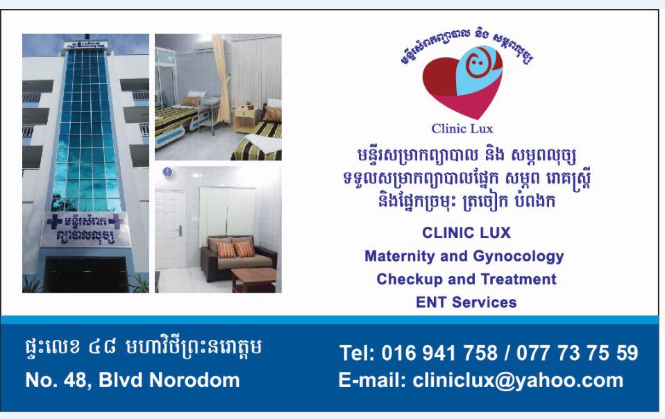 ចំពោះពត៌មានបន្ថែមសូមទំនាក់ទំនងមកកាន់មន្ទីសំរាកព្យាបាលនិងសម្ភព លុច្ស តាមលេខទូរសព្ទ័ៈ 016 941 758 ឬ 077 737 559 ឬអញ្ជើញមកកាន់គ្លីនិកដោយផ្ទាល់ដែលមានអាស័យដ្ឋាននៅអាគារលេខ 48 មហាវិថីបព្រះនរោត្តម សង្កាត់ជ័យជំនះ ខណ្ឌ័ដូនពេញ រាជធានីភ្នំពេញ។