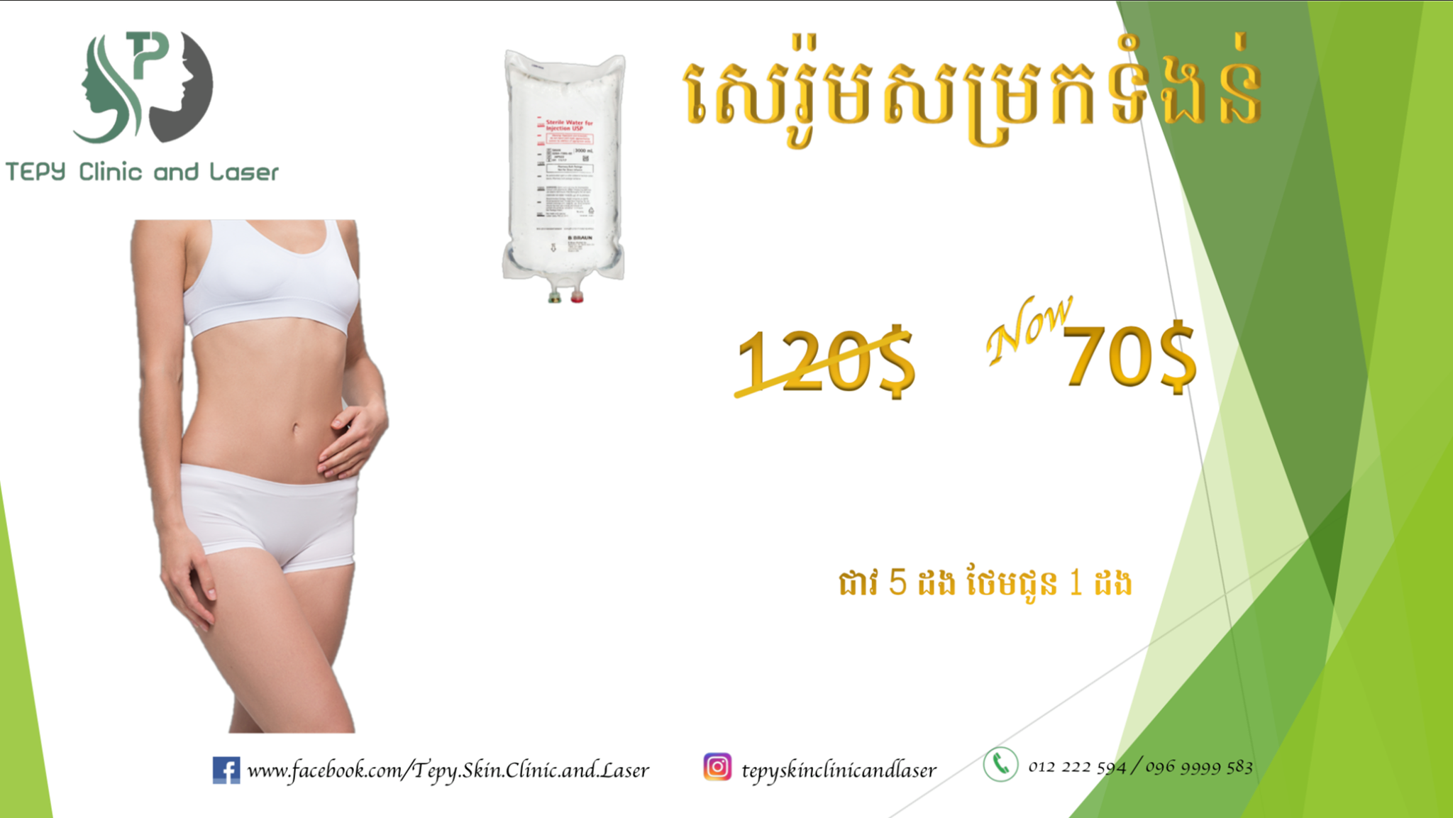 ក្នុងឱកាសសម្ភោធទេពីគ្លីនិក និង ឡេសឺរ និង ថ្ងៃបុណ្យណូអែលក៏ដូចជាបុណ្យឆ្លងឆ្នាំសកលខាងមុខ ទេពីគ្លីនិកយើងខ្ញុំសូមផ្ដល់ការបញ្ចុះតំលៃជាពិសេសចាប់ពី 10% – 50% លើសេវាកម្មដូចខាងក្រោម និងព្រឹក្សាយោបល់ដោយមិនគិតថ្លៃ