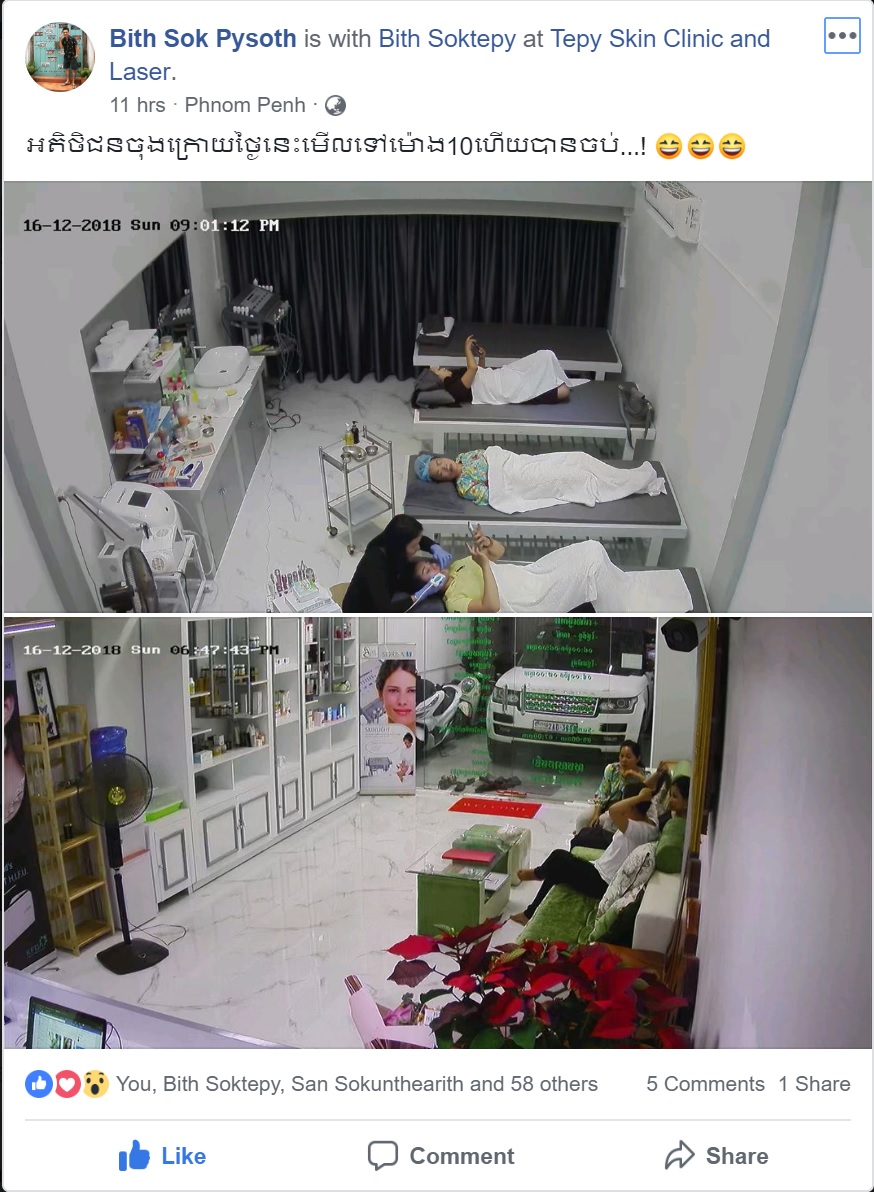 យោងទៅលើអាខោនហ្វេសប៊ុកមួយឈ្មោះ Bith Sok Pysoth  បានចែលរំលែករូបភាពរបស់វេជ្ជបណ្ឌិតឯកទេសសើរស្បែកនិងសម្ភស្ស វ័យក្មេងដ៍ស្រស់ស្អាតម្នាក់ដែលបញ្ចប់ការសិក្សាមកពីប្រទេសថៃនិងអាមេរិក នៅក្នុងរូបភាពនេះឃើញថារហូតដល់ម៉ោង 9:00យប់ទៅហើយក្តីក៍មានអតិថិជនជាច្រើននៅអង្គុយរង់ចាំរួមជាមួយនិងវេជ្ជ. ទេពី ជាម្ចាស់គ្លីនិកកំពុងរវល់ជាប់ដៃពិនិត្យនិងព្យាបាលជូនដល់អតិថិជនរបស់ខ្លួនជាមួយនិងទឹកមុខពោរពេញដោយភាពហត់នឿយលាយឡំនិងស្នាមញញឹម។ នៅក្នុងនោះគាត់បានសសេរថា អតិថិជនចុងក្រោយថ្ងៃនេះមើលទៅម៉ោង10ហើយបានចប់…! ???